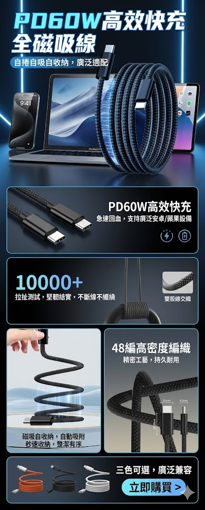 如果你也是受夠了線材收納的「極簡效率黨」,這條磁吸短線絕對是提升生活質感的小物。現在就入手,開啟你俐落、整潔的充電生活吧!